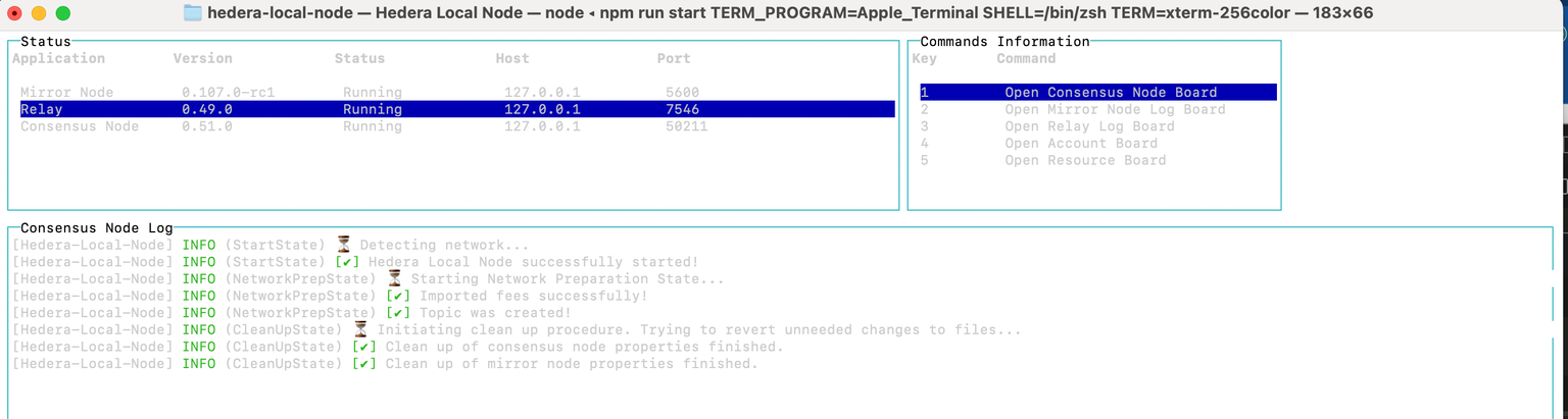[Hedera-Local-Node] INFO (StartState) [✔︎] Hedera Local Node successfully started!